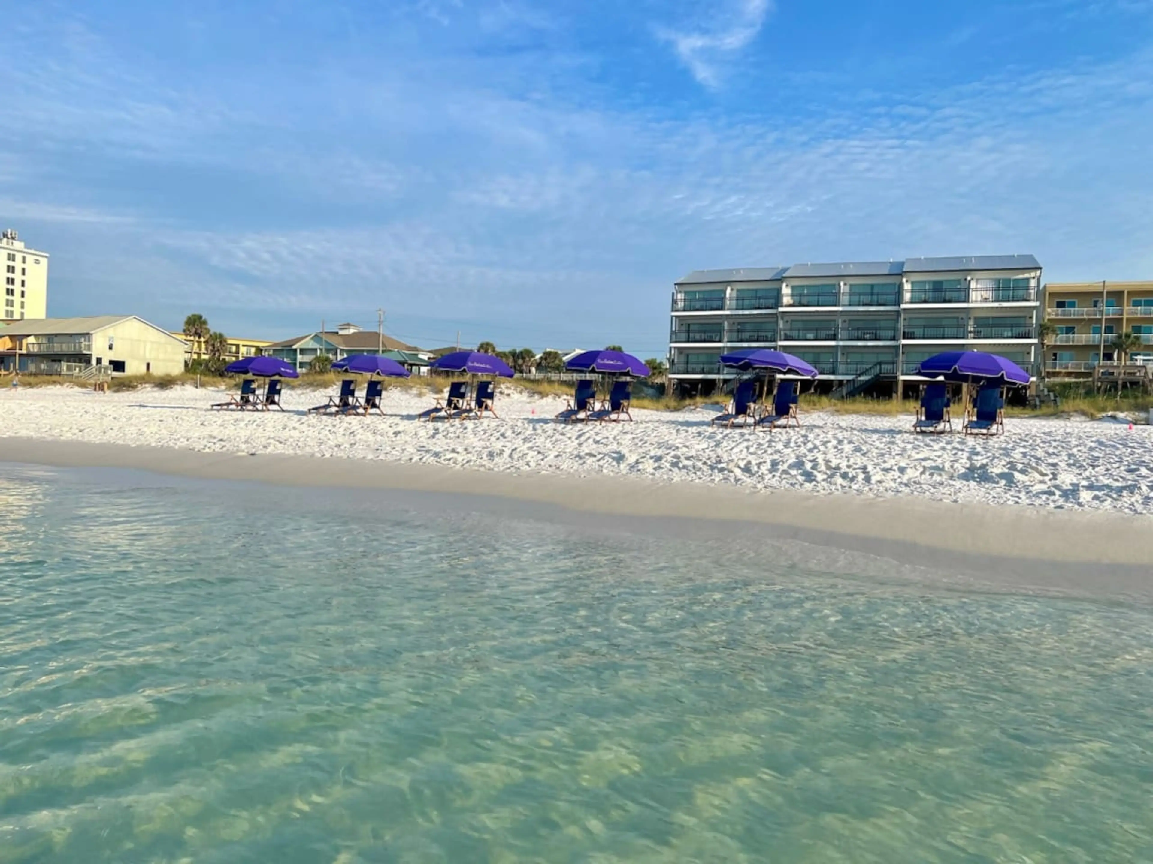 'Sol Mate' Gulf front Townhome located on HWY 98W in Miramar Beach! This fun colorful space has unimpeded gulf views on all 3 floors. Steps out the back slider door & your toes are on the white sandy beach; no walking across the street or even from blocks away carrying your cooler, floats & kids. S...